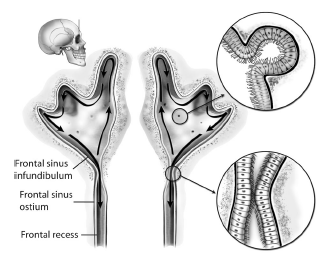 - Describe the anatomy of the frontal sinus and the frontal recess.