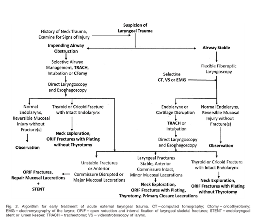 - Schaefer SD. Management of acute blunt and penetrating external laryngeal trauma. The Laryngoscope. 2013.